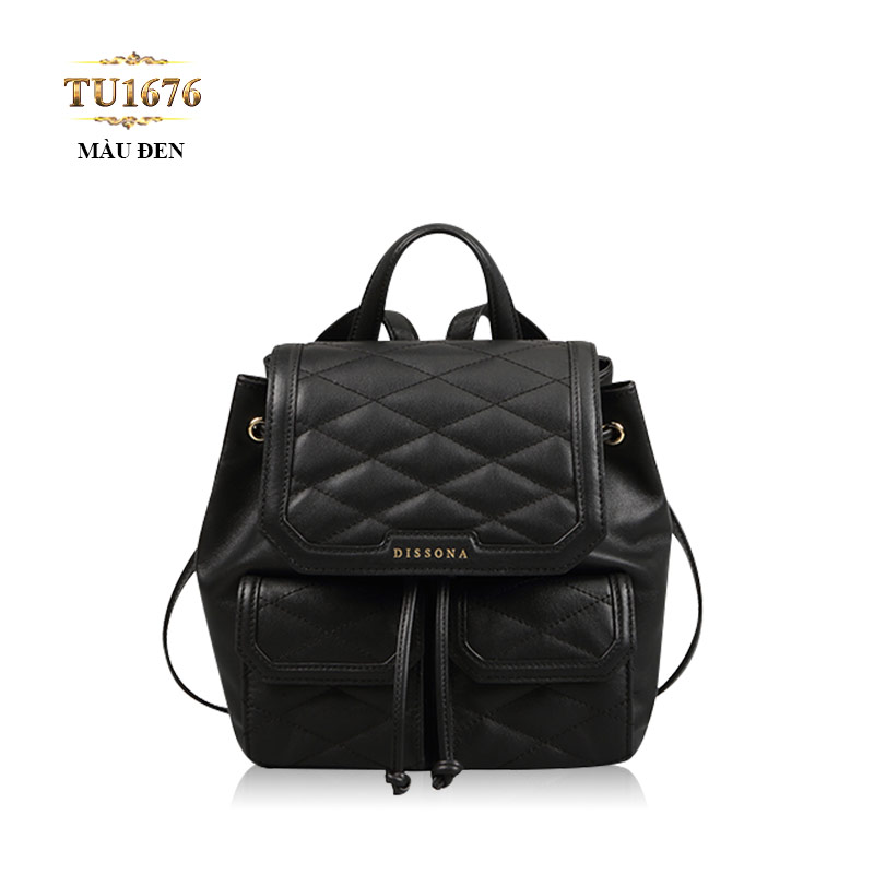 Balo da Dissona quả trám 2 túi trước cao cấp TU1676 (Màu đen)