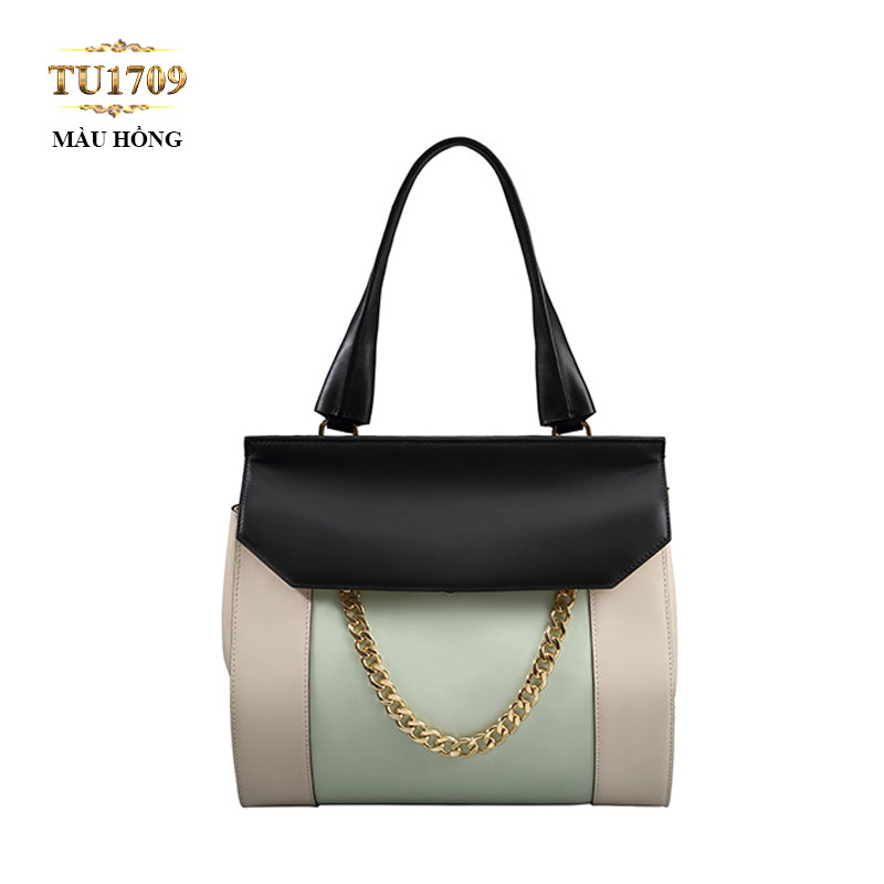 Túi xách da cao cấp nắp đen móc xích thời trang TU1709 (Màu trắng)
